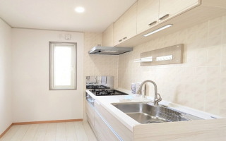 ※システムキッチンは順次左写真と同等に入替予定。収納が便利な引出式を採用。ガスコンロはビルトイン。 | ||