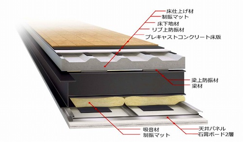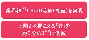 | 二階の床はRCコンクリート27cm厚に匹敵の防音性で業界初のサイレントハイブリッドスラブ50を採用 |